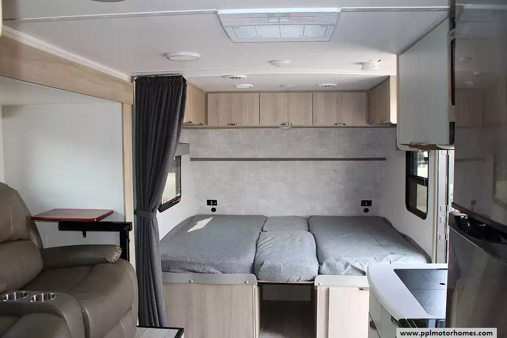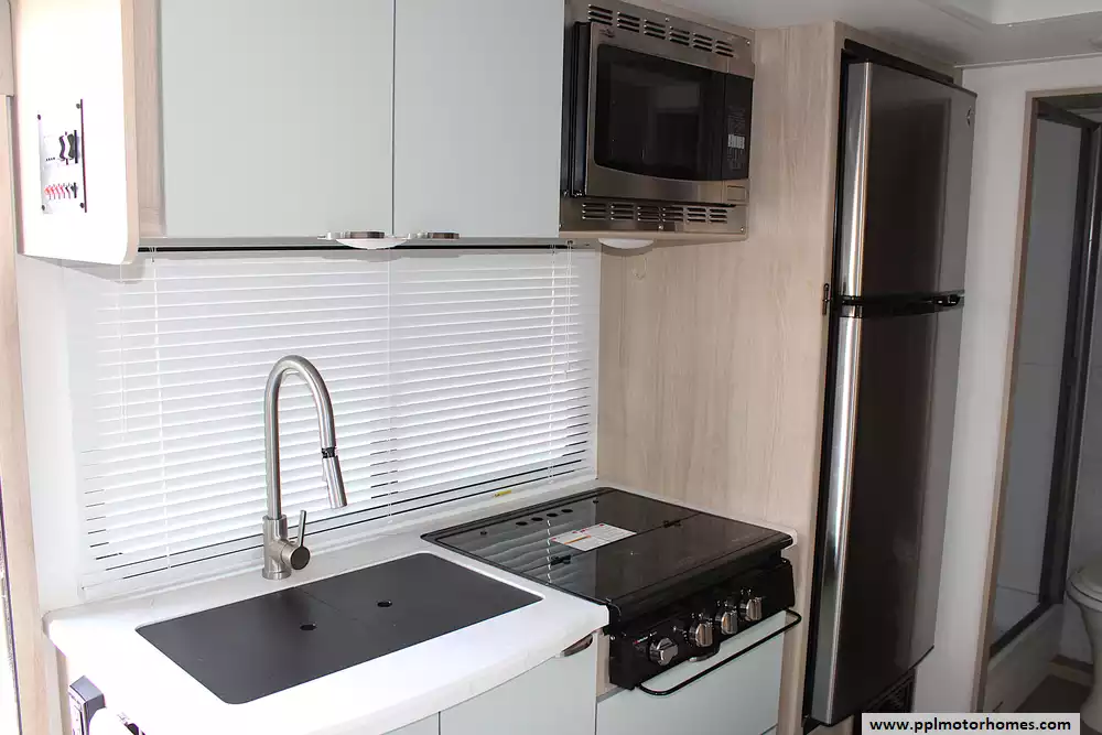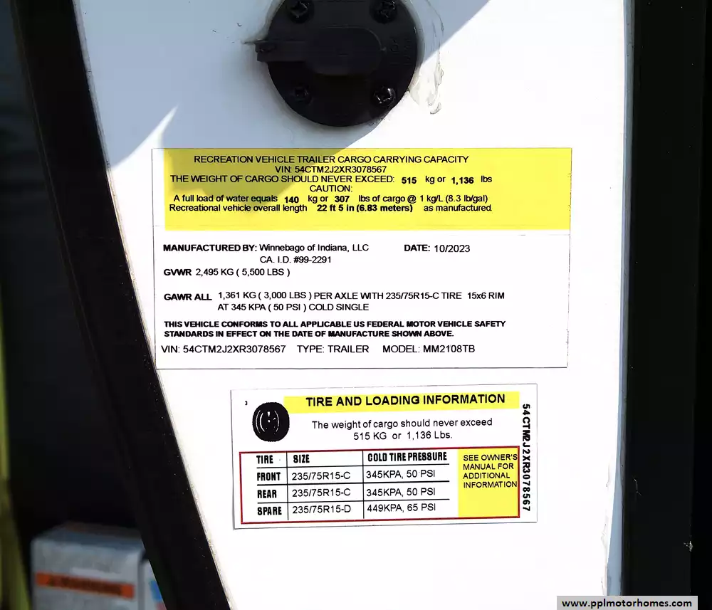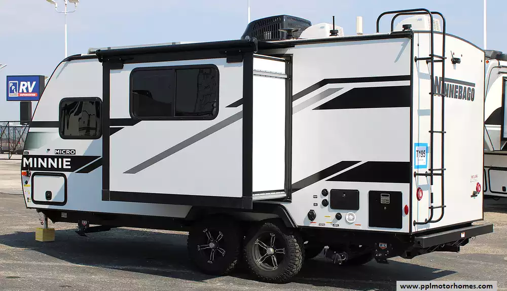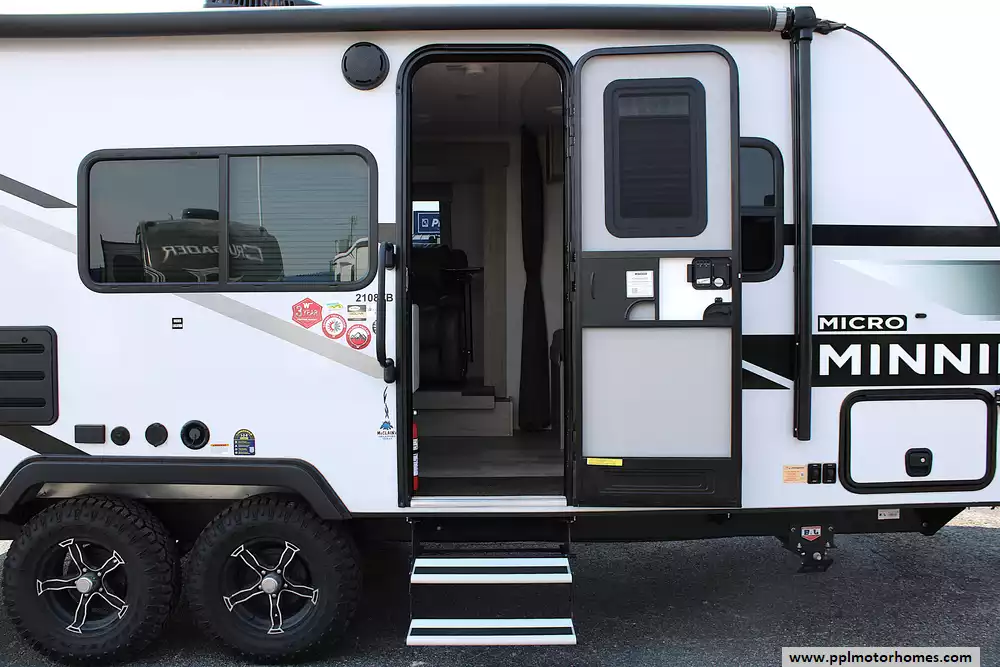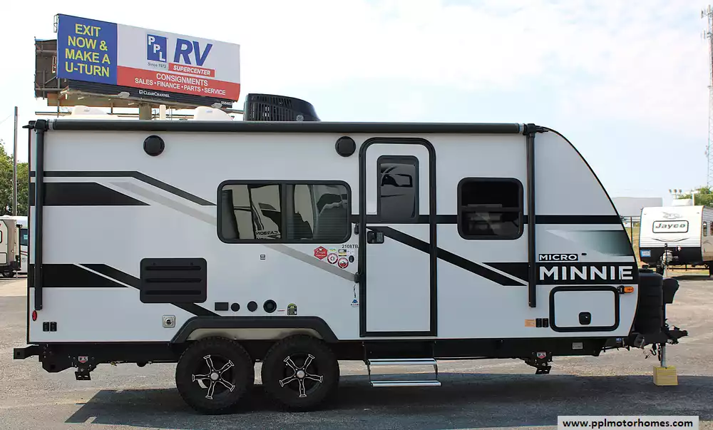 This coach also comes loaded with upgrades and conveniences that set it apart. A Soft Start AC system ensures cool comfort even when running on limited power, while backup and side-view cameras provide peace of mind on the road. The slide topper protects your slide from debris and weather, extending its life. Outside, a 15-foot power awning with LED lighting, solar prep, and heated tanks make this trailer ready for year-round adventures. With Winnebago's reputation for quality, this Micro Minnie 2108TB delivers big features in a towable, easy-to-manage size--perfect for couples, small families, or anyone looking to elevate their camping lifestyle.