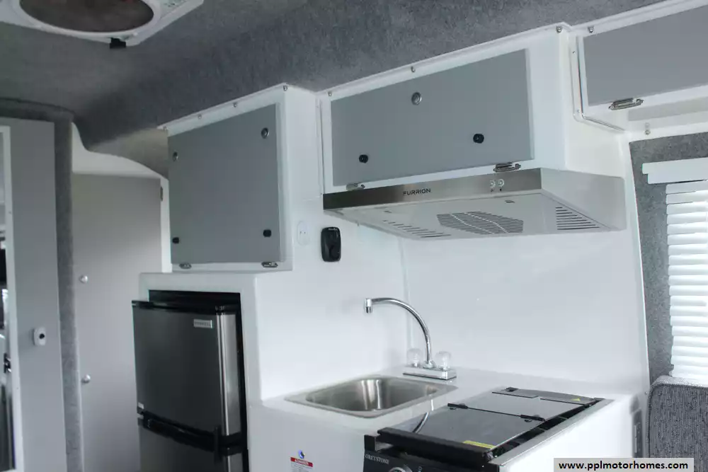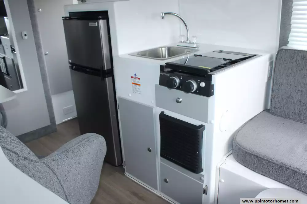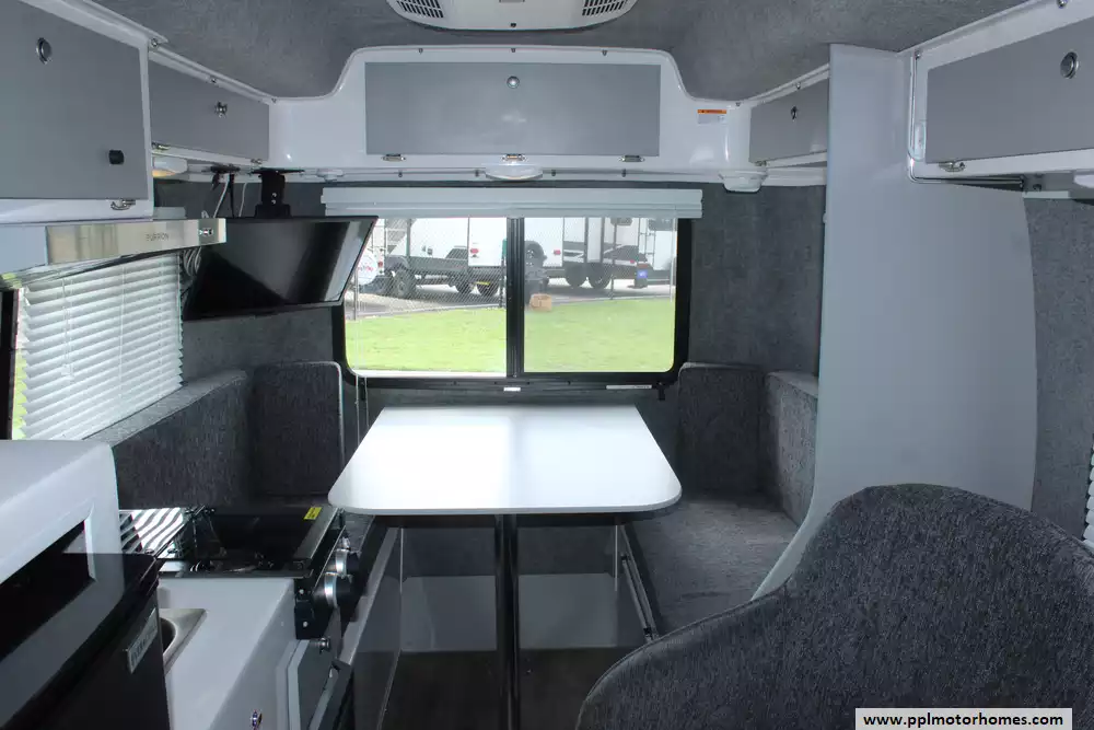 Specs: Length: 17 ft., Height: 8.11 ft., Width: 6.8 ft., Interior Height: 6.2 ft., Total Fresh Water Tank Capacity: 16 gal., Total Gray Water Tank Capacity: 32 gal., Total Black Water Capacity: 15 gal.