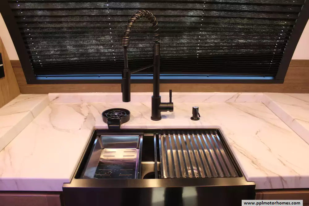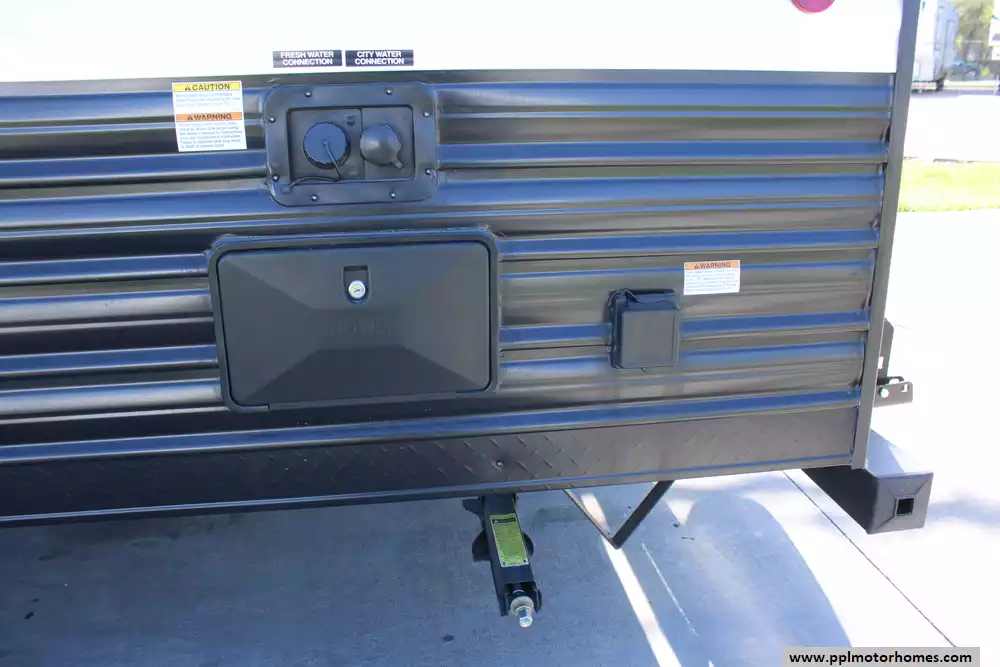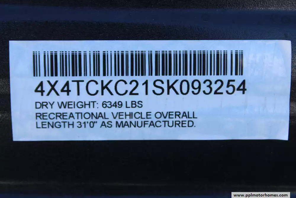 Specs: Length: 31 ft., Width: 8 ft., Height: 10.6 ft., Payload Capacity: 1,607 gal., Total Fresh Water Tank Capacity: 52 gal., Total Gray Water Tank Capacity: 38 gal., Total Black Water Tank Capacity: 38 gal.