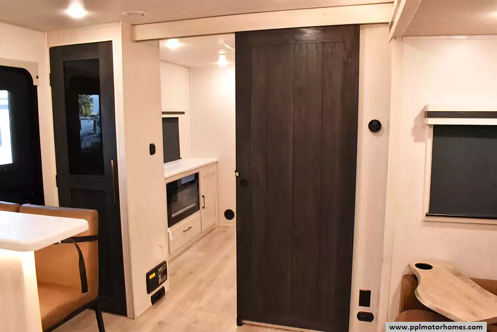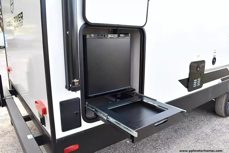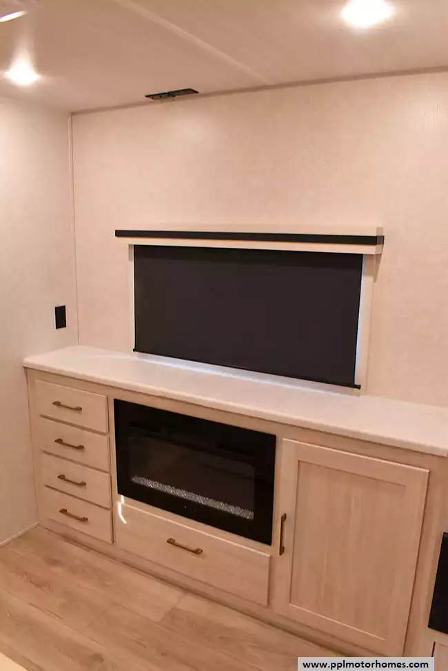 This 2025 Land Surveyor Series 268FKBS has an Electric Tongue Jack, 2 Slide-outs, 2 Ducted Air Conditioners, Double Door 12v Furrion Refrigerator (Additional Refrigerator Present), Automatic Main Awning, Washer/Dryer Connections, Solar Panel, Heated Tanks, Satellite Receiver, Outside Speakers, TV, Outdoor Grill, Outdoor Kitchen, Outside Shower, Fireplace, Central Vacuum, Microwave, 3 Burner Range, Oven