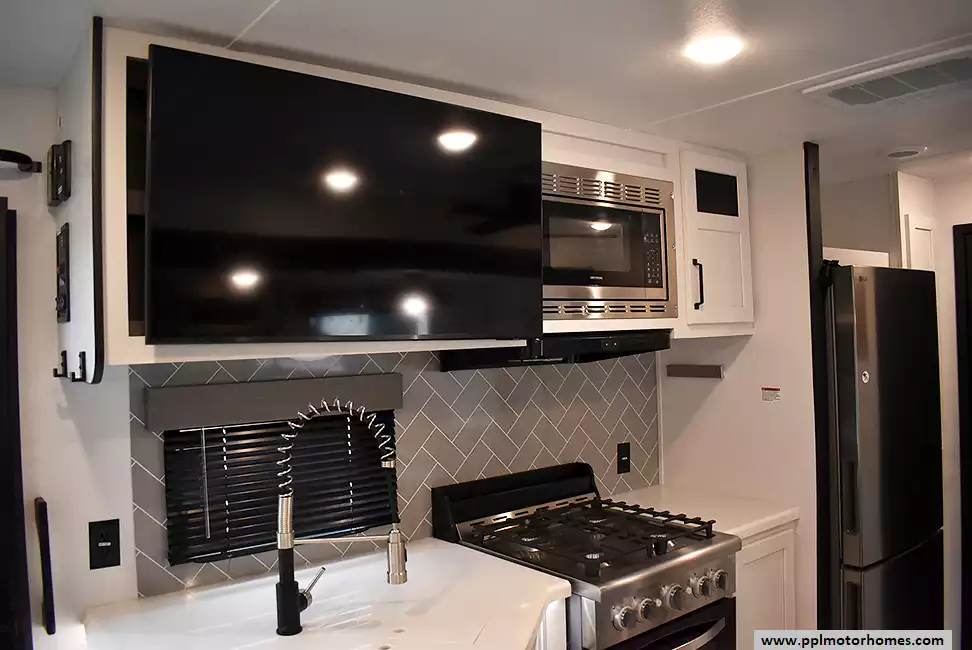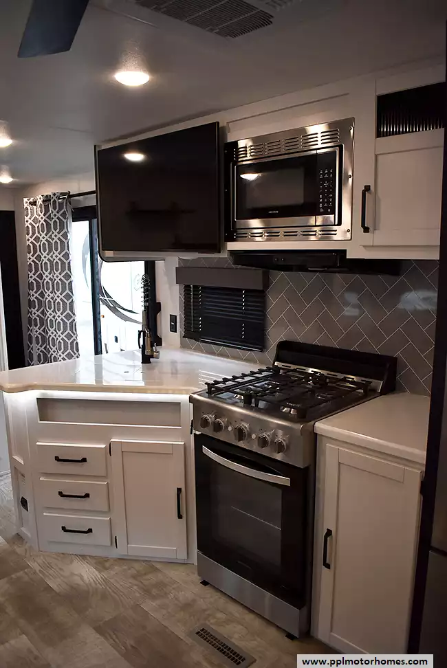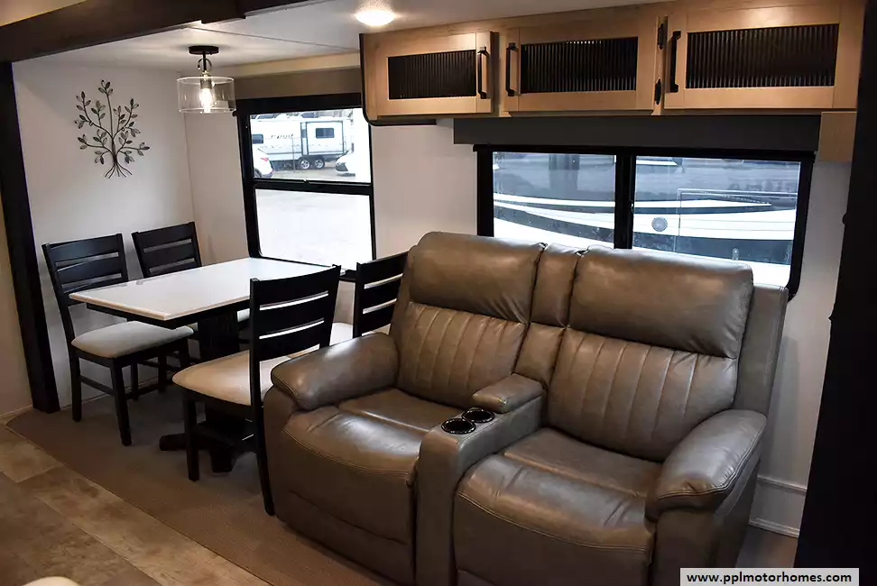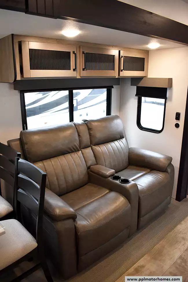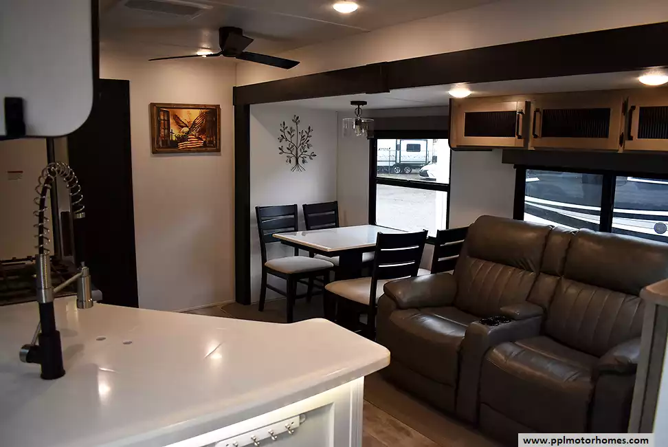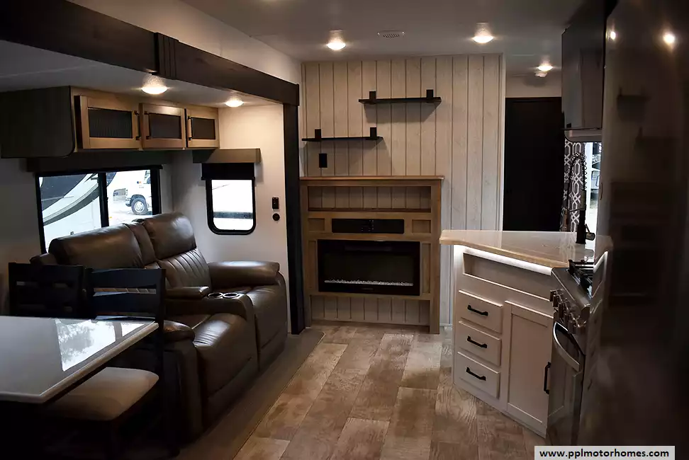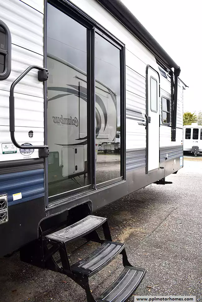 This 2025 Puma Series 39DBT has a 3 Slide-outs, 1 Non-Ducted And 2 Ducted Air Conditioner, Double Door Residential Lg Refrigerator, In-Fridge Ice Maker, Automatic Main Awning, Washer/Dryer, Satellite Dish, Outside Speakers, TV, Fireplace, Microwave, 4 Burner Range, Oven