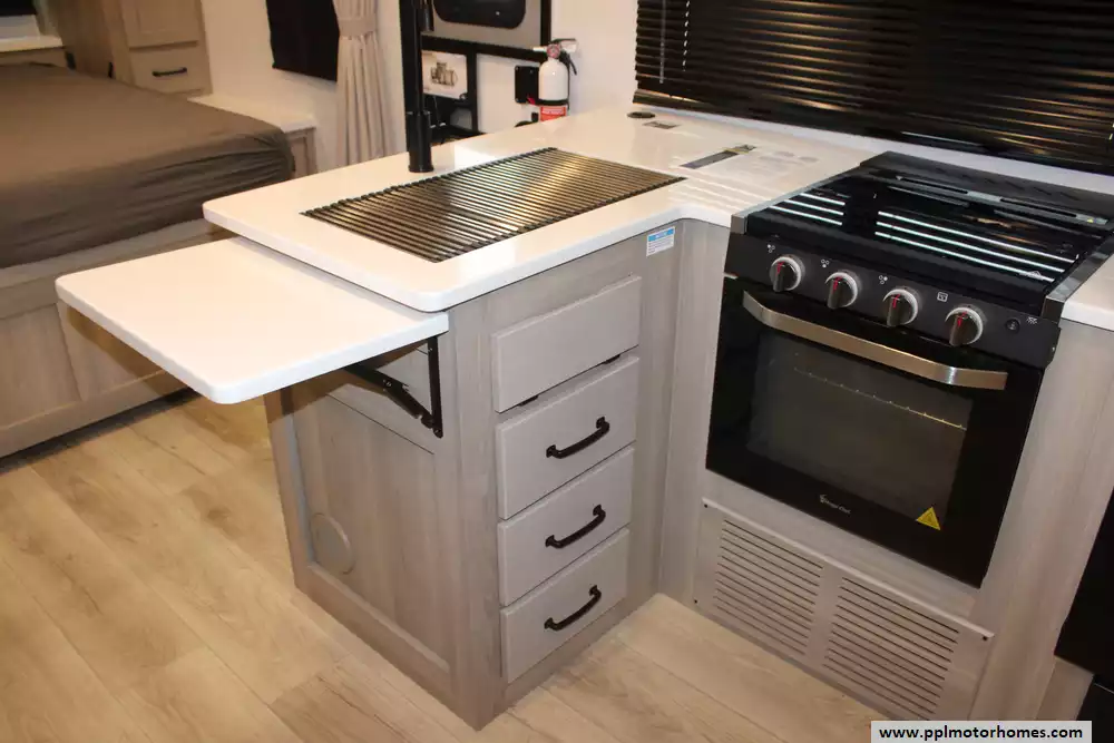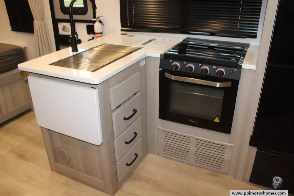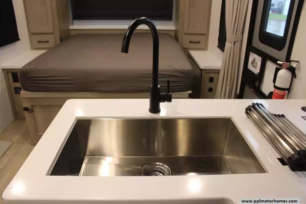 Specs: Length: 23.10 ft., Width: 8 ft., Height: 10.11 ft., Total Payload Capacity: 1,550 lbs., Total Fresh Water Tank Capacity: 54 gal., Total Grey Tank Capacity: 29 gal., Total Black Water Tank Capacity: 29 gal.