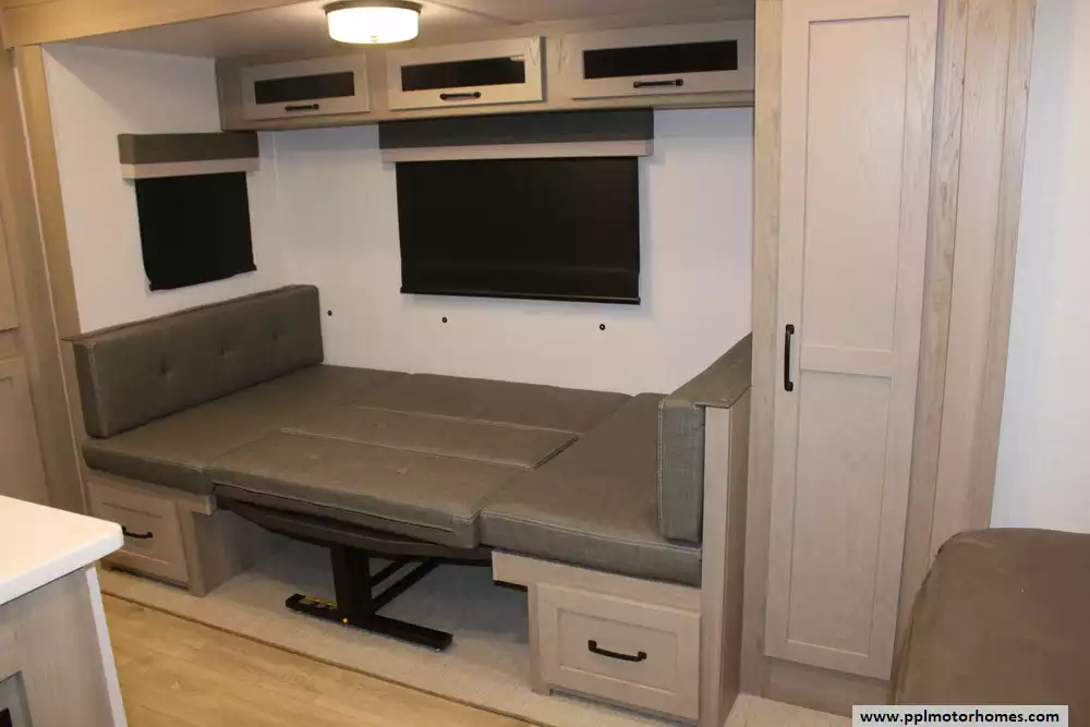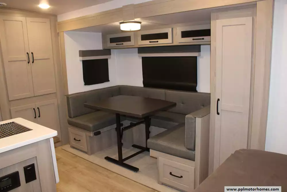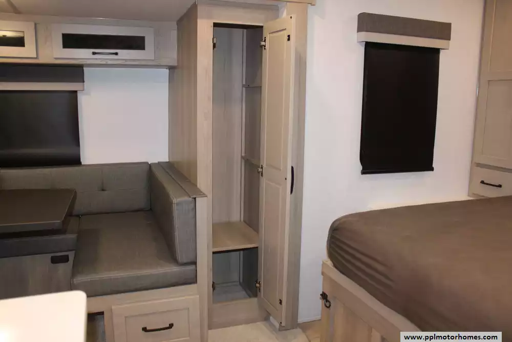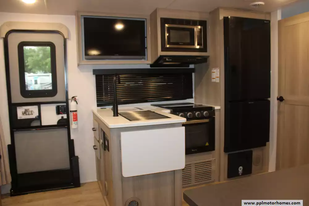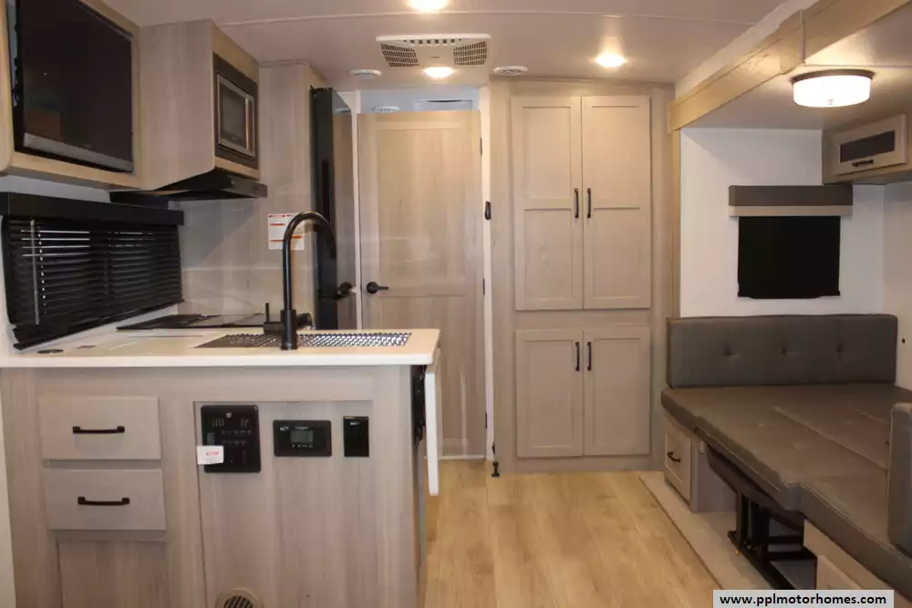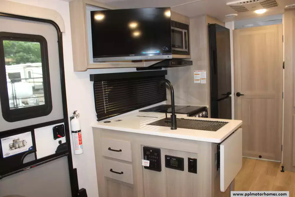 Designed for the modern traveler who values both convenience and functionality, the 2214S comes equipped with an electric tongue jack for effortless setup and an automatic main awning to instantly create an outdoor living space. The well-appointed kitchen features a 12v Magic Chef refrigerator, a microwave, and a three-burner range with an oven, allowing you to prepare gourmet meals wherever you park. Entertainment and utility are never far away thanks to the included TV, outside speakers, and a convenient outside shower for quick cleanups. With its sophisticated design and legendary Rockwood reliability, this travel trailer is the ultimate choice for those seeking a high-quality camping experience without the bulk of a full-sized rig.