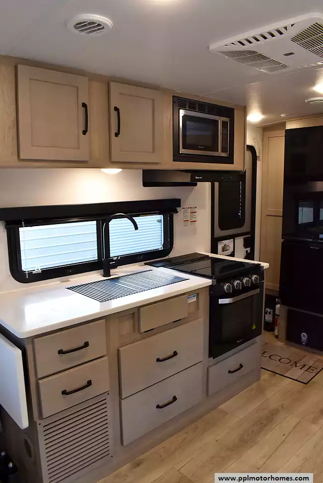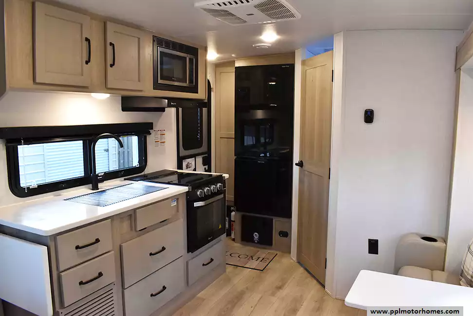 This 2025 Rockwood Mini Lite Series 2109S has an Electric Tongue Jack, 1 Slide-out, 1 Ducted Air Conditioner, Double Door 12v Magic Chef Refrigerator, Automatic Main Awning, Solar Panel, Satellite Receiver, Outside Speakers, TV, Outside Shower, Microwave, 3 Burner Range, Oven
