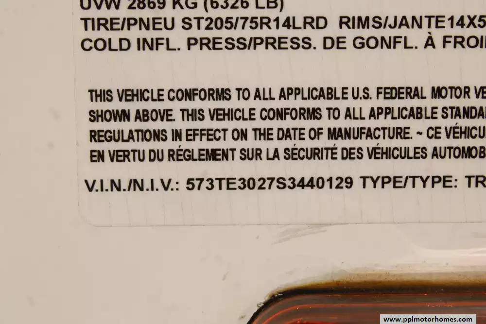 Specs: Length: 29.75 ft., Width: 8 ft., Height: 10.83 ft., Total Fresh Water Tank Capacity: 37 gal., Total Gray Water Tank Capacity: 82 gal., Total Black Water Tank Capacity: 37 gal., Total Number Propane Tanks: 2.