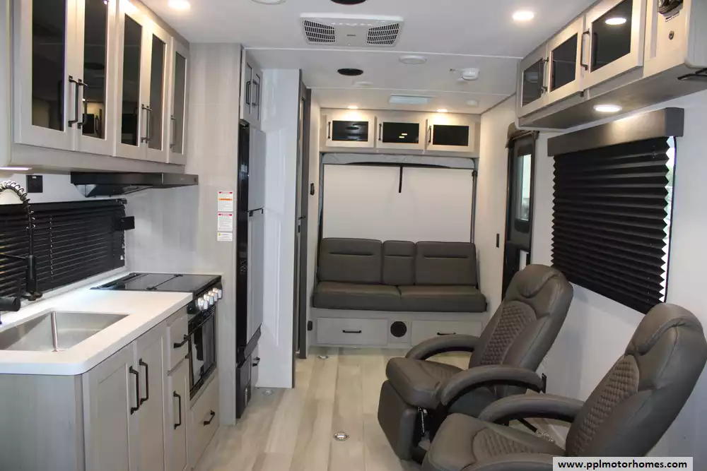 (Floor plan is NOT drawn to scale. Length of vehicle is approximate. Buyer is responsible for verifying actual length. PPL Motor Homes compiled this list of features, specifications, equipment and options as a guide. No representation or warranties, either express or implied, are made as to the accuracy of the information herein. Please verify for yourself all items listed before purchase.)