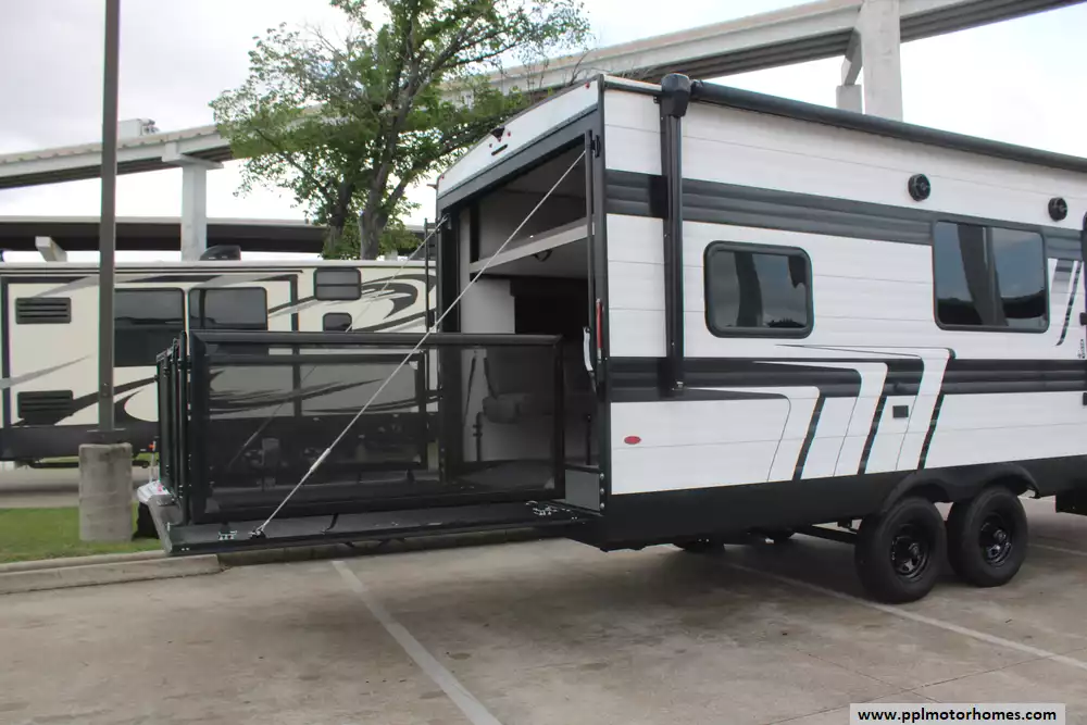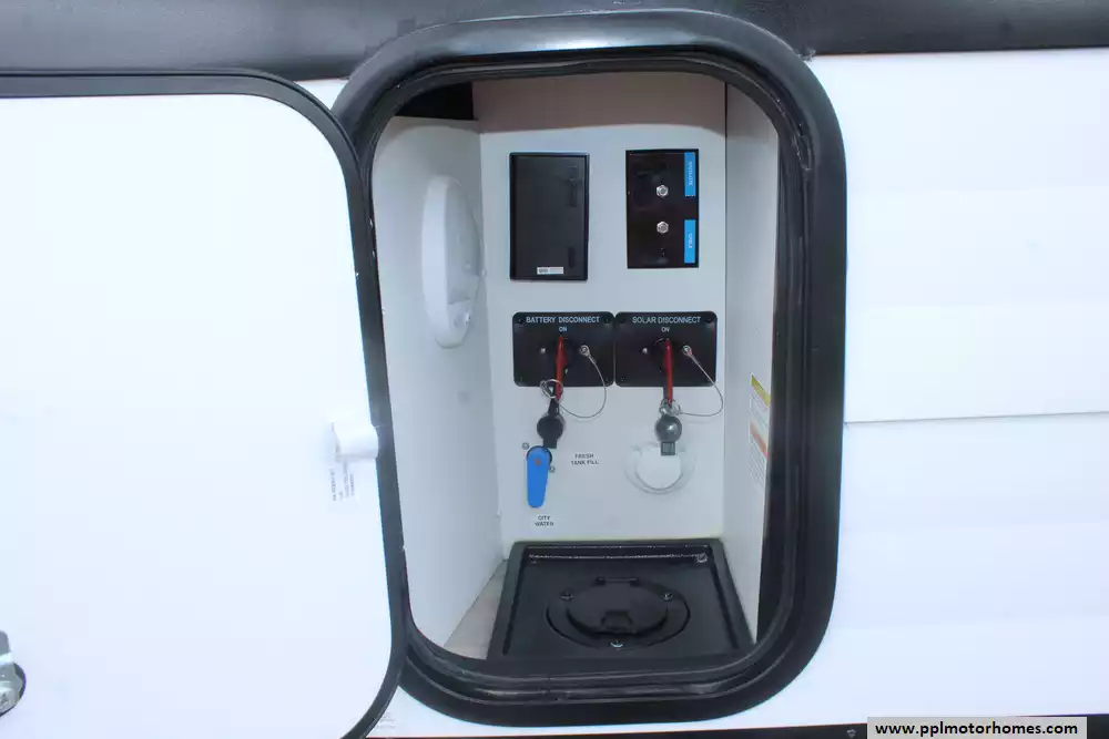 Specs: Length: 26.6 ft., Width: 8.4 ft., Height: 12.2 ft., Total Fresh Water Tank Capacity: 90 gal., Total Gray Water Tank Capacity: 74 gal., Total Black Water Tank Capacity: 37gal., Total Number of Propane Tanks: 2, Total Propane Tank Capacity: 40 lbs.