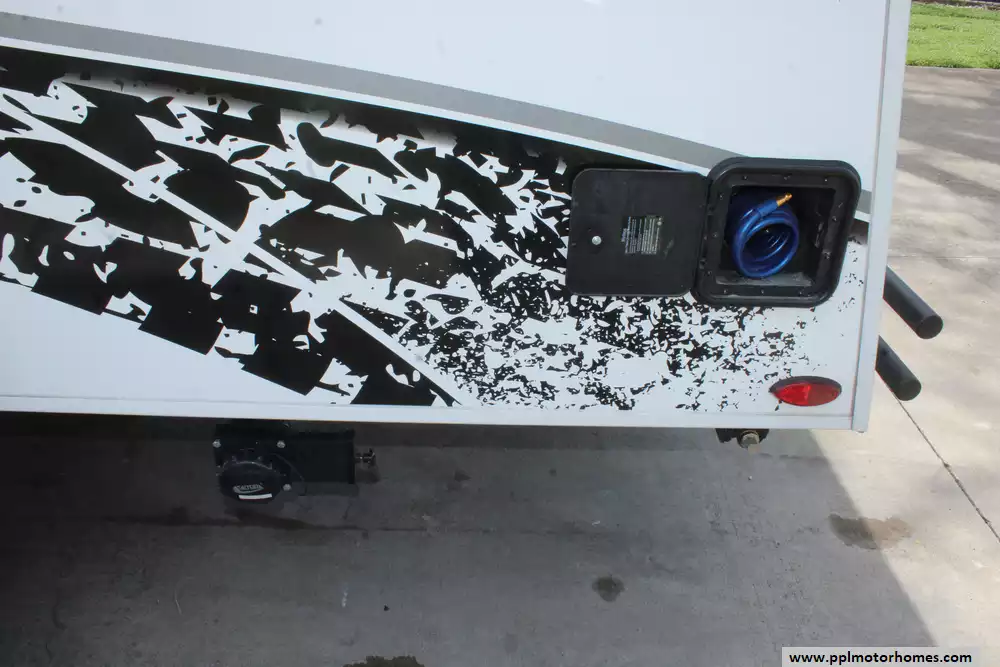Specs: Length: 16 ft., Width: 8.6 ft., Height: 9.5 ft., Interior Height: 6.4 ft., Total Payload Capacity: 910 lbs., Total Fresh Water Tank Capacity: 20 gal., Total Black Water Tank Capacity: 28 gal., Total Number of Propane Tanks: 1, Propane Tank Capacity: 20 lbs.