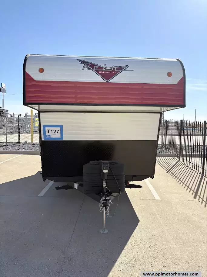 The 2025 Riverside RV Retro 145 features a unique "cabover" floor plan that uses an elevated bunk to free up floor space, a design inspired by 1960s vintage campers.