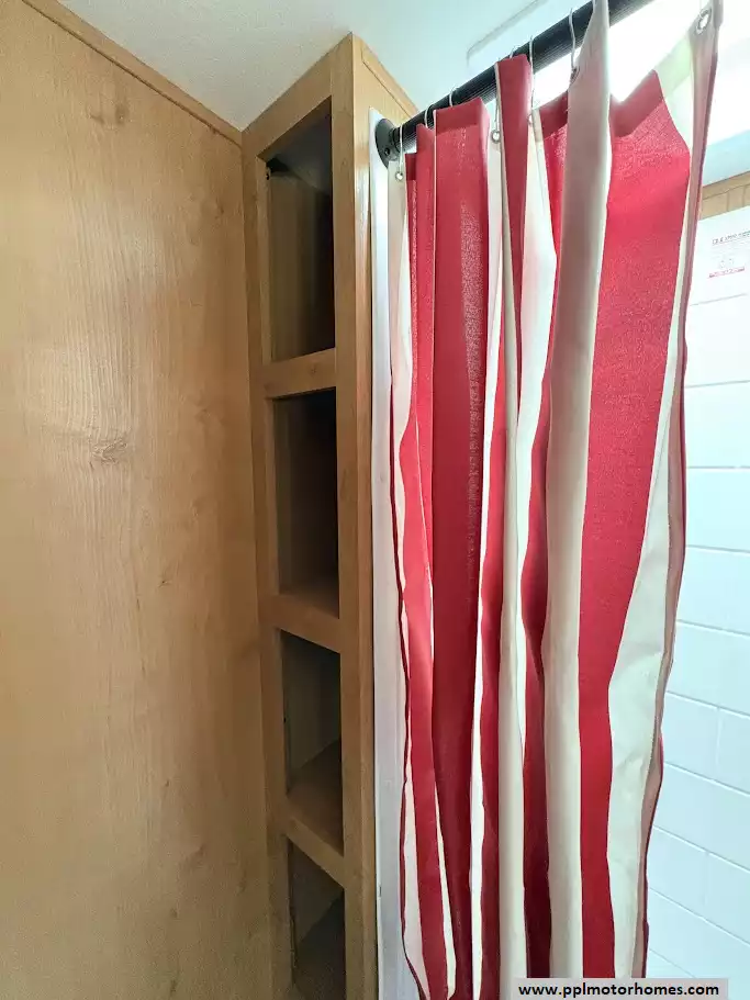 The rear of the RV is occupied by a dry bath with a separate 32" x 32" shower and a foot-flush toilet.