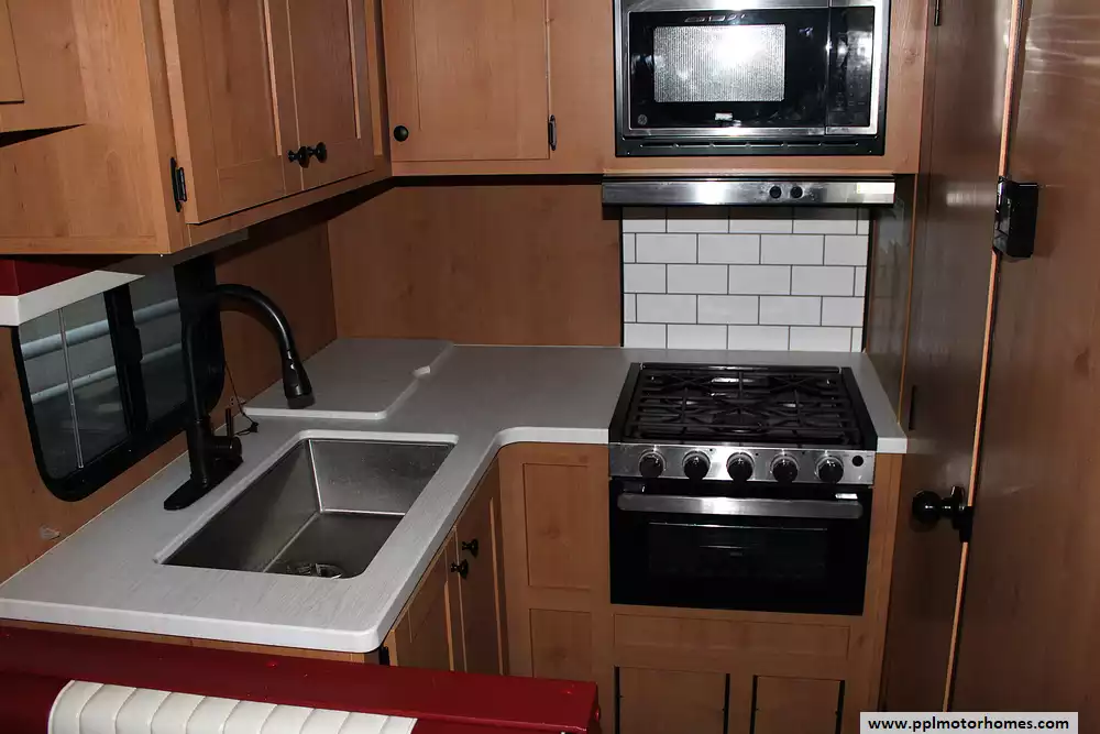 Despite its retro vibe, the 211RK is built for today's camping lifestyle. It comes standard with features like tinted safety-glass windows, a powder-coated chassis for durability, interior and exterior LED lighting, and modern conveniences such as USB ports, a 3-burner cooktop, gas/electric water heater, and 12V refrigeration. This trailer is light enough to tow without fuss, yet sturdy and well-equipped enough to make even longer journeys comfortable -- from crisp autumn weekends to sunny summer escapes.